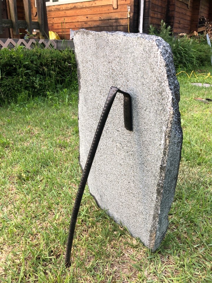 The Shape of Ready-made, 2020, Granite, strechable tape, mosquito net, hammer